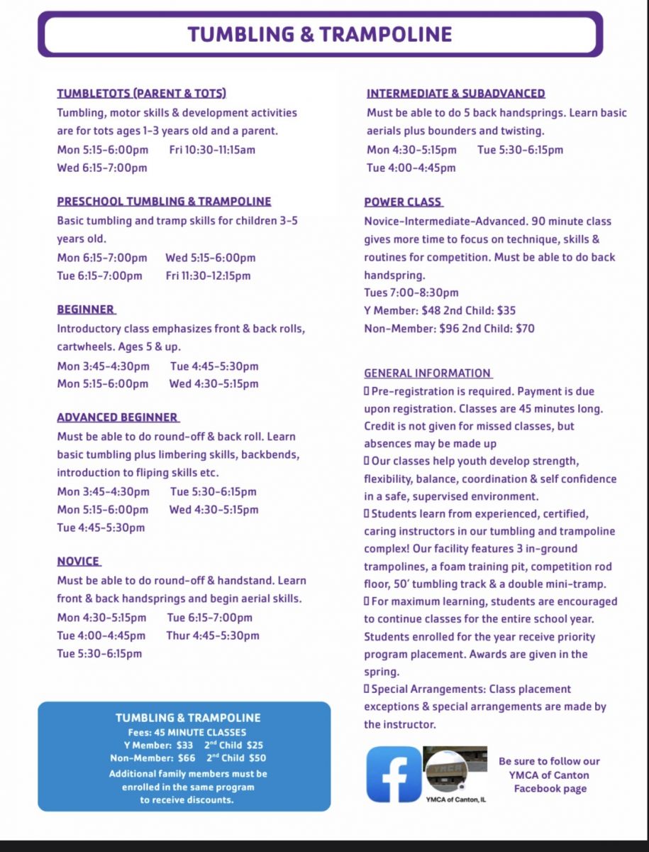 For more information, contact: Carlye Beadles, Tumbling Director, at cbeadles@cantonfamilyymca.org